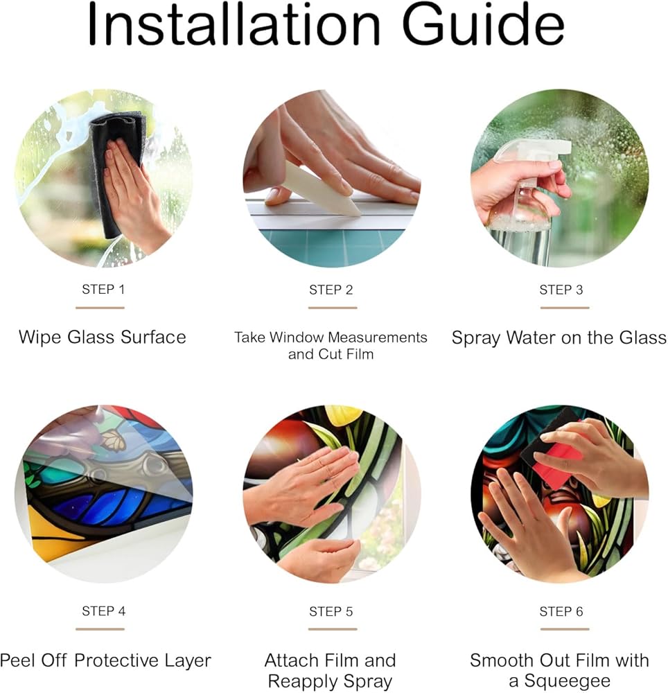 💡 Installation Tips: Ensure the window surface, edges, and corners are clean and free from dust before applying. Generously spray water on the window and film for effective adhesion, then trim the edges and leave slight gaps for easy air bubble removal.
