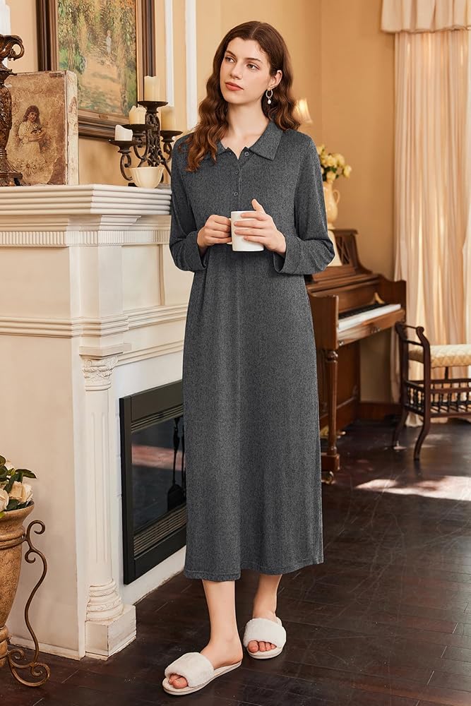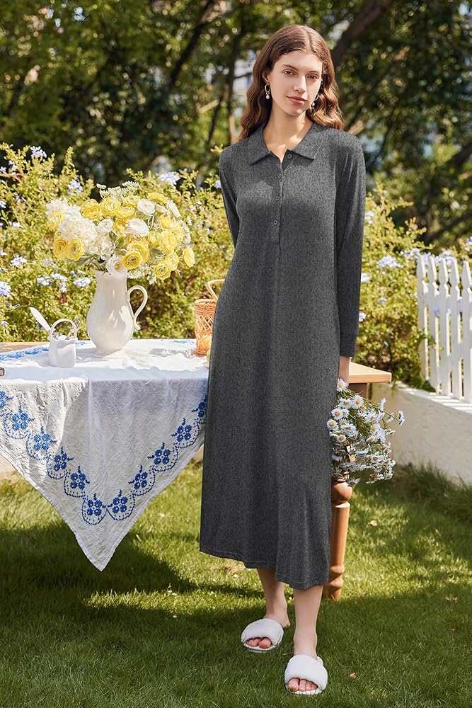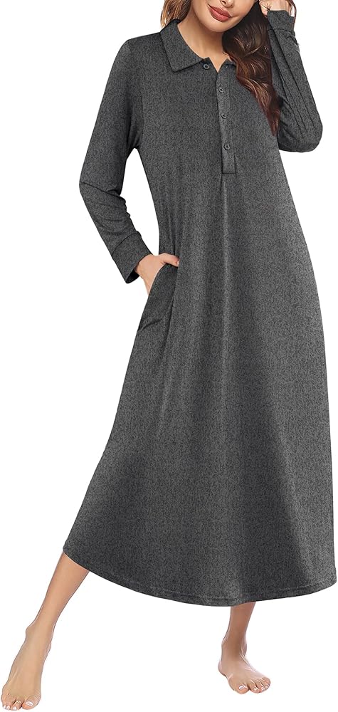 Classic Design: Long sleeve pajama dress is full-length, covering your entire body and keeping you warm. Four buttons allow you to adjust the collar depth, making it easy to put on or take off and breastfeeding. The pockets on both sides can also hold things. Plus size nightdress is loose to wear