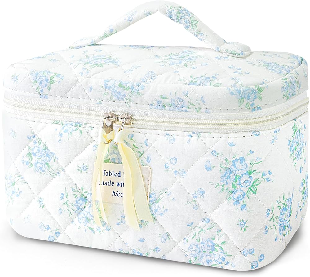 【PREMIUM QUALITY AND DESIGN】Our makeup bags are expertly crafted from high-quality quilted cotton, ensuring both durability and a stylish appearance. The soft texture of these travel makeup bag adds a touch of comfort to your daily beauty routines, allowing you to relax and truly enjoy the process of getting ready. With easy cleanup and a sturdy zipper, this makeup travel bag is perfect for storing makeup essentials and more
