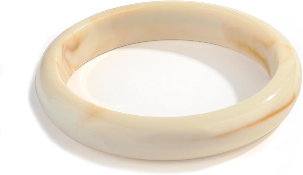 Durable Material: The high-quality plastic bangle resists scratches and fading, maintaining its creamy beige hue. An adjustable opening accommodates most wrist sizes while keeping the cuff bracelet securely in place.