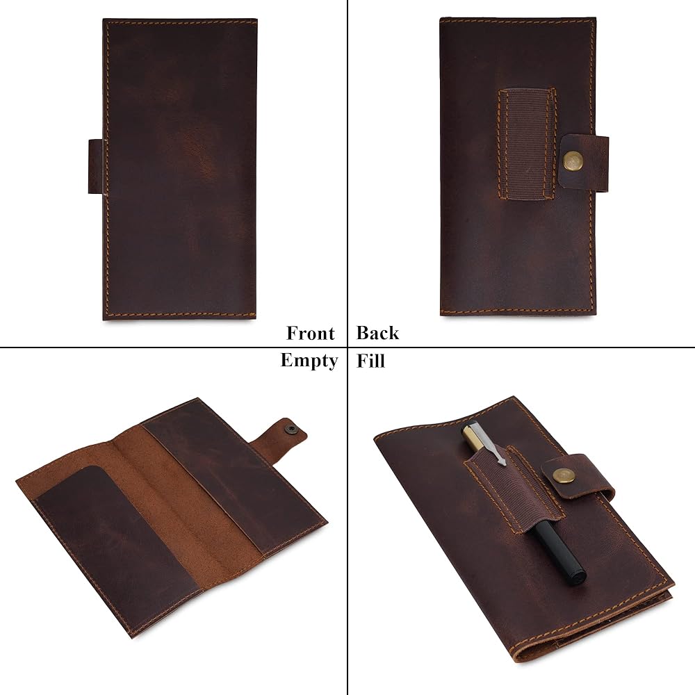 Distressed Leather Checkbook Cover with Pen Holder, Executive Leather Checkbook Wallet for Men Women Slim Vintage Bifold Checkbook Register Organizer for Personal Business Use (Brown)