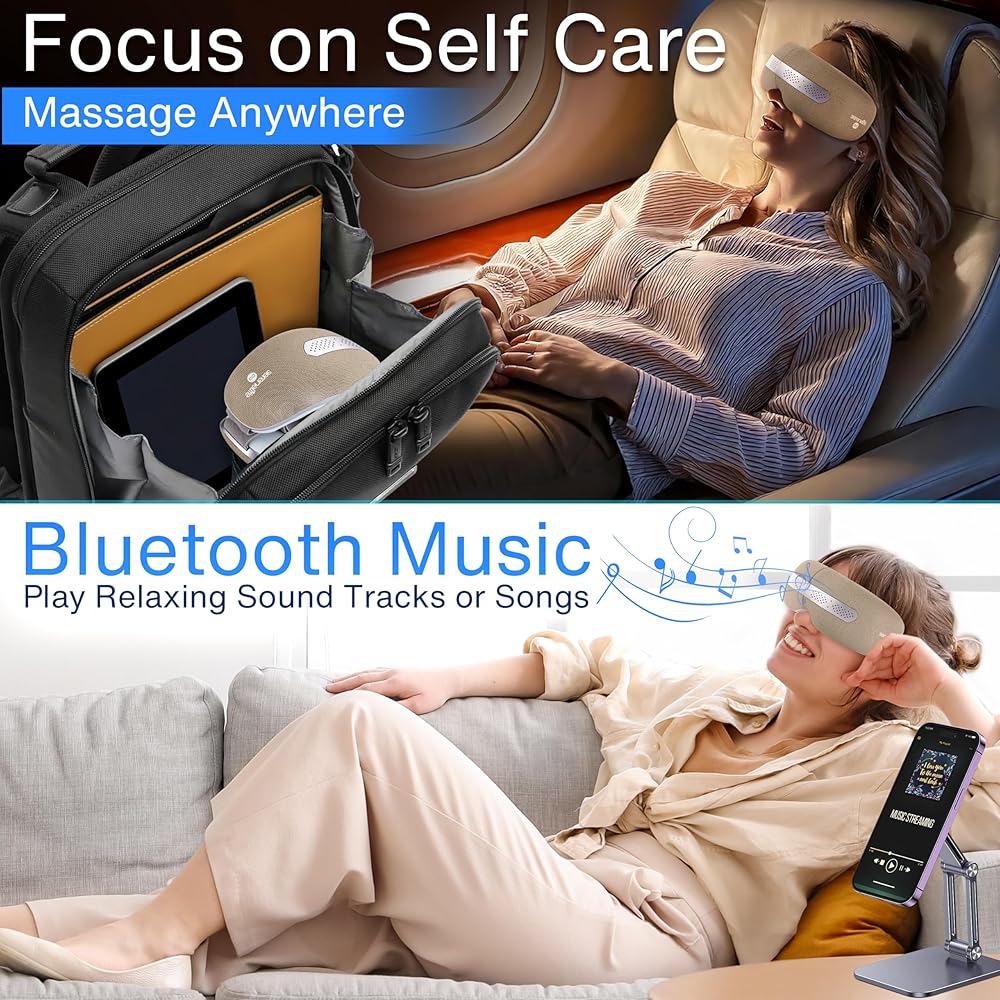 SOOTHING MUSIC - The eye massage mask wireless eye massager features built-in speakers w/ MP3 to help you relax even more. The included USB cable helps to transfer songs easier. Also has an automatic power-off function to ensure undisturbed sleep