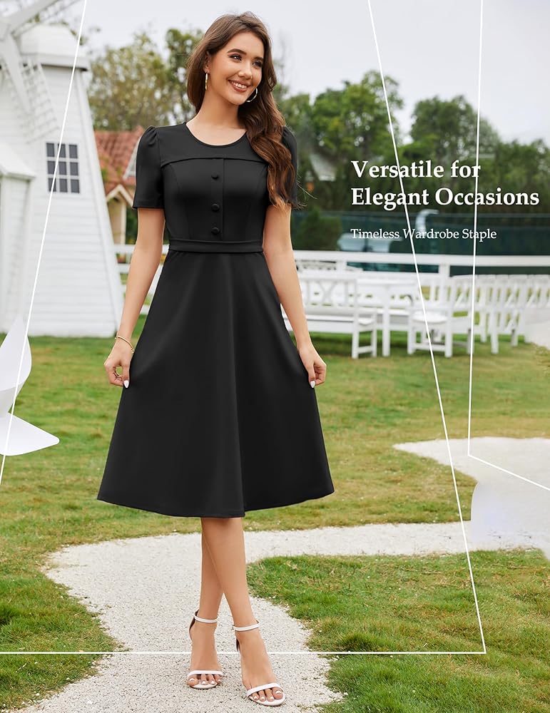 Versatile for Elegant Occasions:Perfect as a wedding guest dress for women, church attire, or for cocktail parties, proms, graduations, and formal dinners. The modest, fit-and-flare design ensures sophistication at any event.