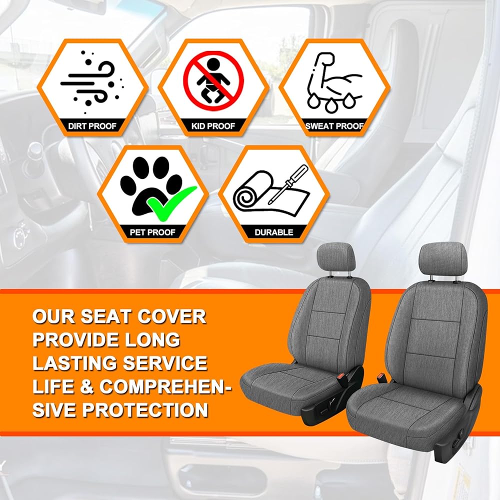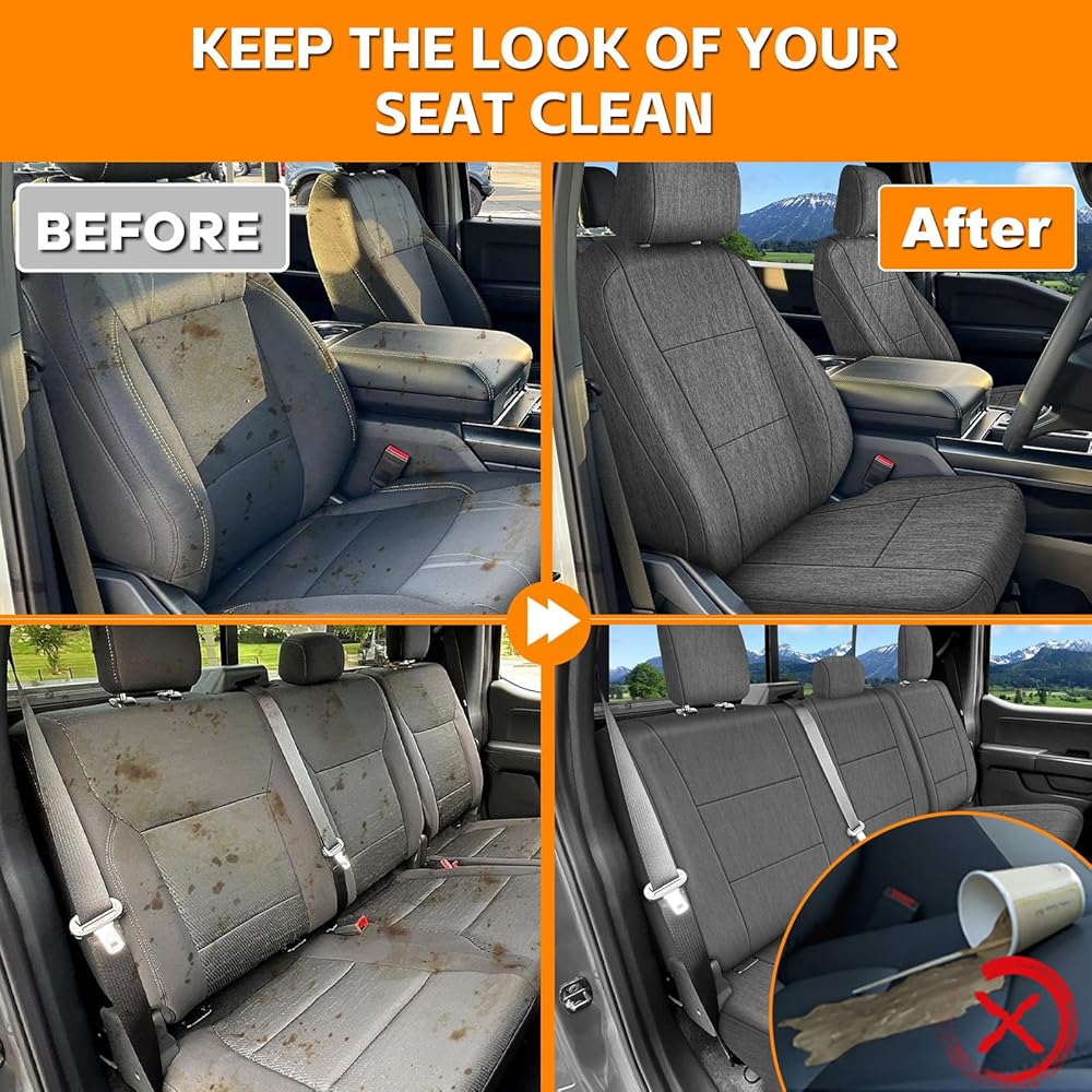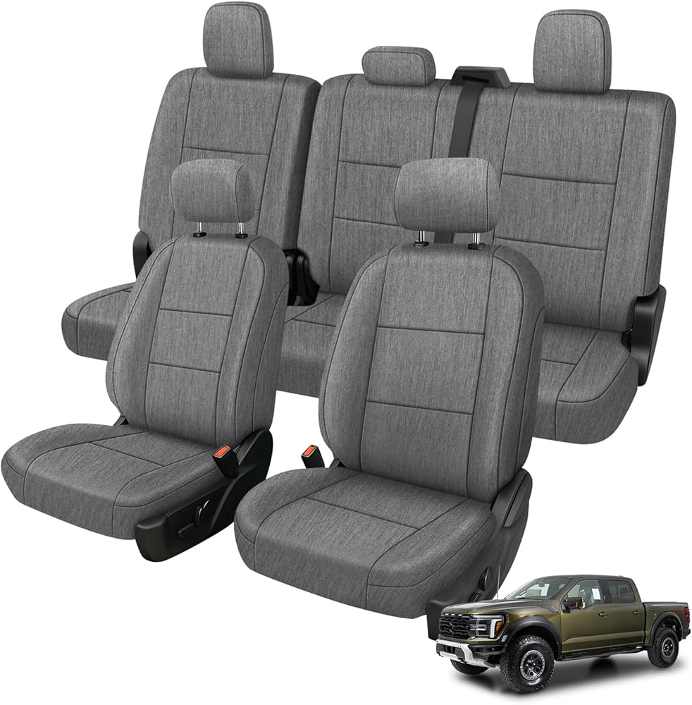 Front and Rear Seat Cover Compatible with 2015-2025 Ford F-150 2017-2025 F250/F350/F450 Crew Cab, Heavy Duty Cationic Linen Fabric Seat Protector, Charcoal