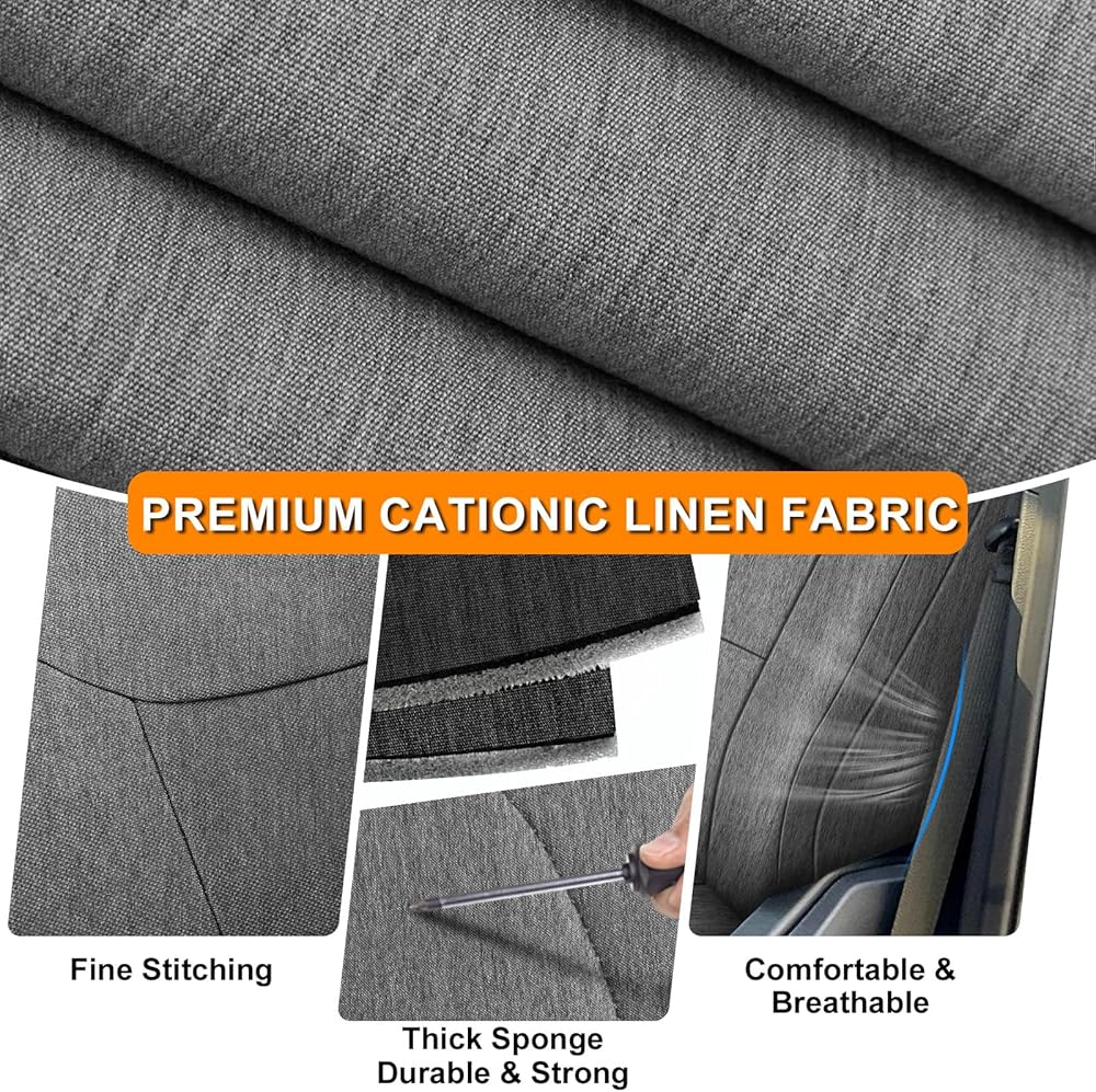 Easy to Clean and easy to install: The High Quality Cationic linen Fabric Seat Covers can be easily cleaned by wiping them with a damp cloth, as they are not machine washable. The precise fit and adjustable straps ensure a hassle-free installation experience, saving you time and effort.