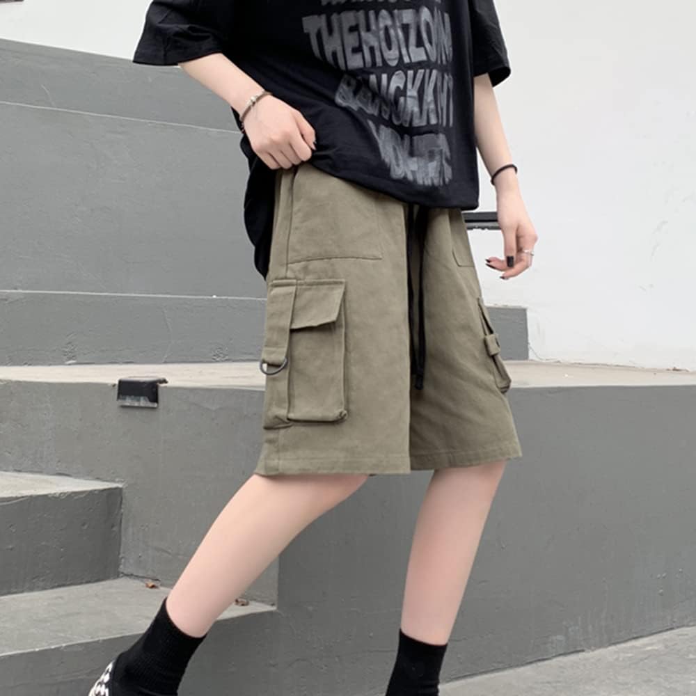 The womens cargo shorts y2k have a elastic waist with adjustable drawstring, allowing you to maintain maximum comfort. Black shorts for women with 5 pockets, 2 slant pockets, 2 thigh pockets and 1 back pocket.