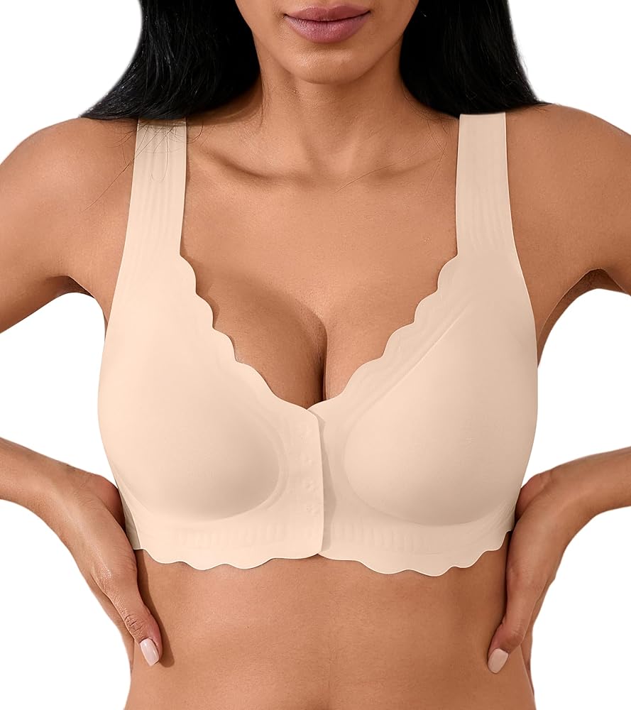 Stylish Front Closure Design: Seamless full coverage bras featured a front closure design with wavy trim side on the top, which helps reduce back strain, front hook and eye closure for easy-off convenience,