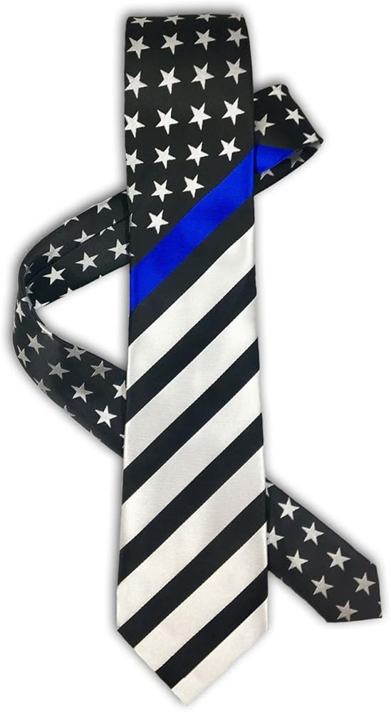 QUALITY NECKTIE - The Thin Blue Line USA Tie is a Beautiful Way to Show Your Support For Those That Keep Us Safe. Black and White Stars and Stripes With the Signature Thin Blue Line Prominently Displayed