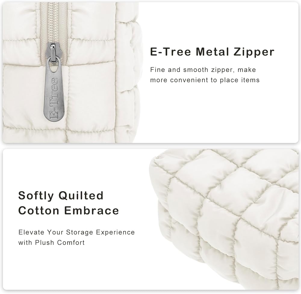 E-Tree Hardware Zippers & High Quality Cotton: durable and lightweight, with a chic quilted pattern and a soft, cotton-padded texture, ensuring both style and comfort., combining with exquisite workmanship with fine stitching and strong zipper closure to ensures your accessories stay secure Inside.