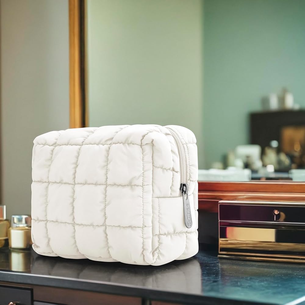 Pillowy Texture Quilted Design: elegance with makeup bag, featuring a chic quilted pattern and a soft pillowy texture, ensuring both style and comfort.