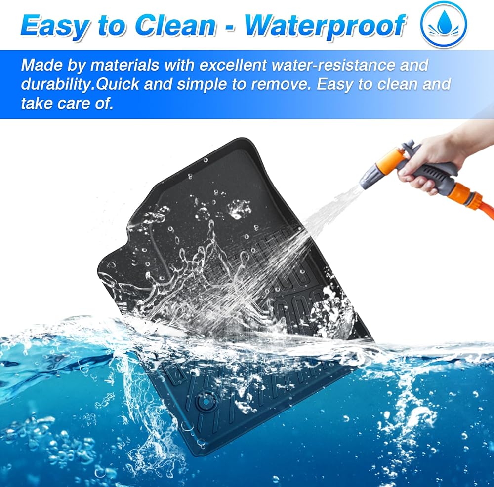 All Weather Protect & Cleaning -- The F-250 floor mats are waterproof, and the groove design forms channels to collect water, mud, snow, debris, ect, to avoid accidental skidding and stains to original car carpets. Easy to clean by rinsing it with water, and dry with towel.