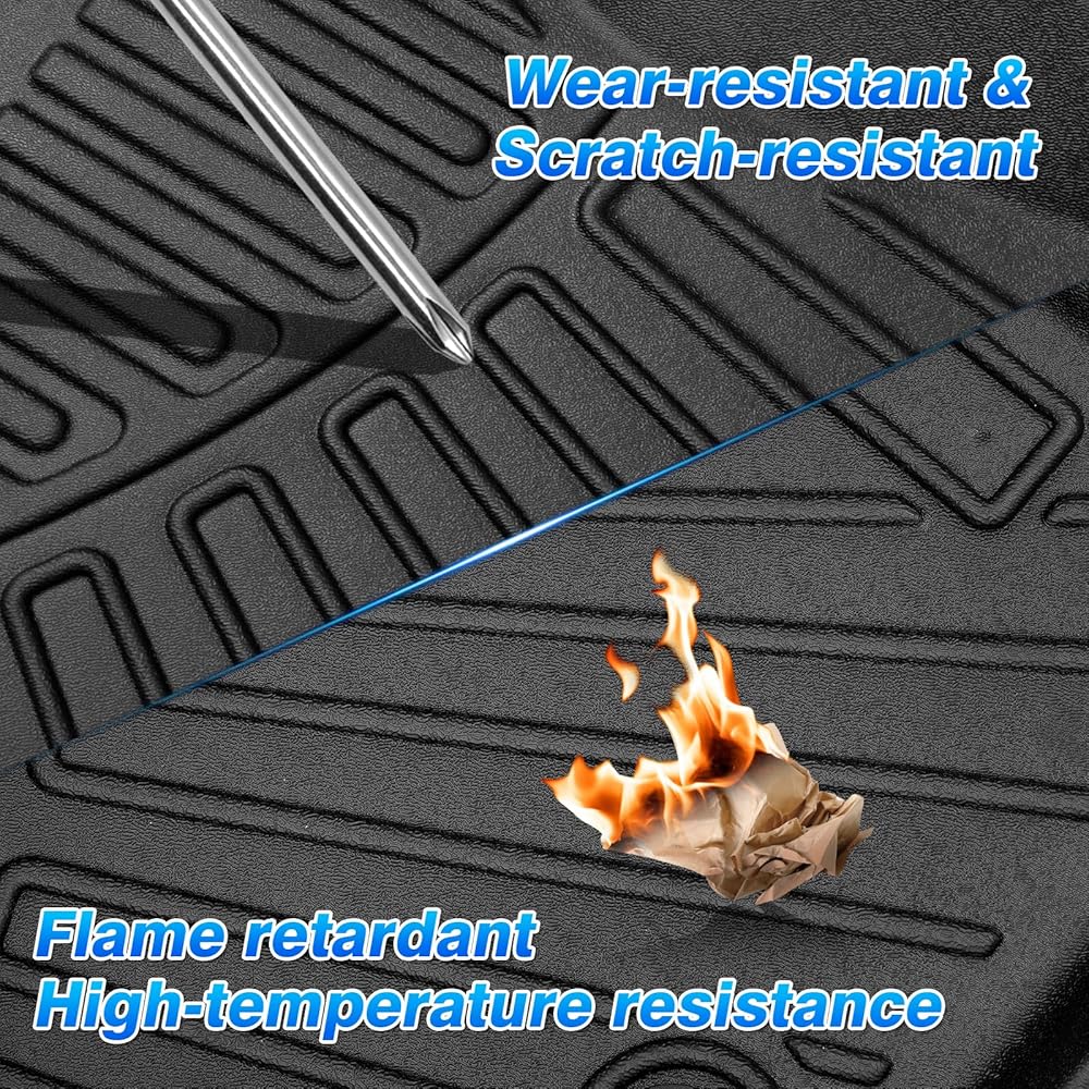 New & Healthy Materials -- The F-250 floor mats carpet are made of new materials TPE, which is eco-friendly, non-toxic, and odorless. It can be used even at a temperature of 122°F, is more temperature resistant than PVC, and is 100% safe for your family.