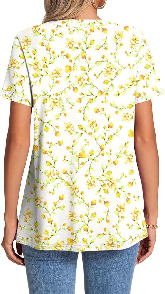 Design: Cute V-neck and two buttons design, classic short sleeves, the length of the top can cover the belly, loose, dressy, casual