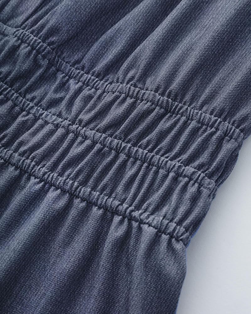 Flexible Support:Crafted from soft and lightweight chambray fabric in a beautiful blue hue, this denim dress is perfect for warm weather. The elastic waistband not only accentuates your waistline but also provides comfortable stretch, ensuring a snug yet flexible fit.