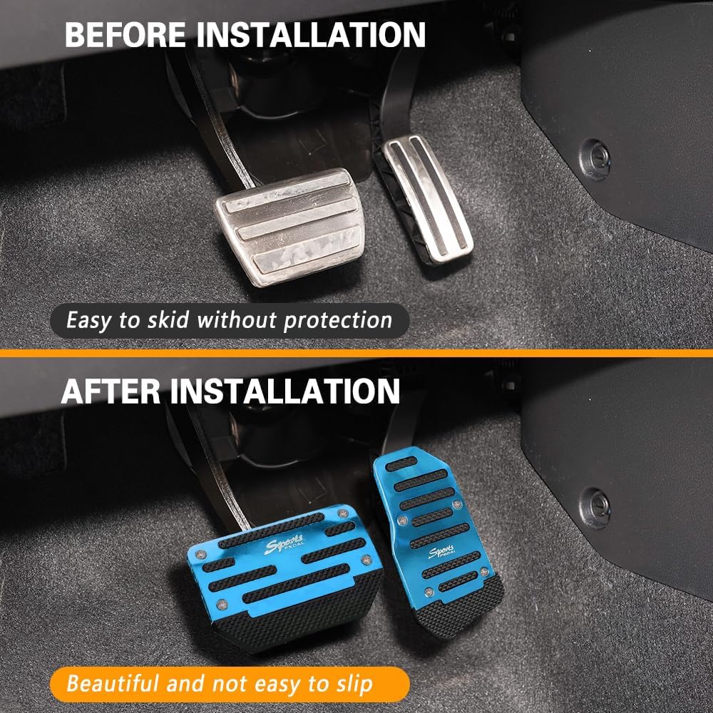 [Wide application range]: The accelerator pedal cover measures 15 x 7.5cm/5.9 x 2.95 inches The brake/clutch pedal cover measures 13 x 8.5 cm/ 5.11 x 3.34 inches. The brake pedal and accelerator pedal cover are applicable to most automatic cars. Please check the size of the car pedal before purchasing to ensure that there is no problem.