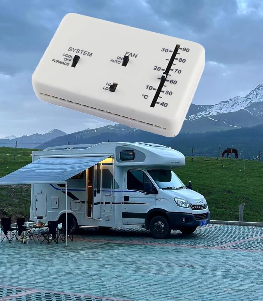 This thermostat is a great choice for camping as it can control the temperature of your RV and provide you with a comfortable environment Installation: RV thermostat suitable for Dometic 3106995.032, only for heating/cooling, wall mounted installation. Function: This product has simple and clear functions, which are used to replace faulty fan control panels. It can restore internal air circulation in the RV and help you adjust the temperature of the RV. That is to say, the RV thermostat can control the cooling/heating furnace/fan/shutdown. Adjustment range: The allowable range of the temperature adjustment slider is 40-90 ° F (4-32 ° C) Packaging: RV analog thermostat (1 piece), instruction manual (1 piece), screws (2 pieces), rubber plug posts (2 pieces). Kind reminder: During installation, Please record the wiring method before installation to avoid abnormal operation caused by incorrect wiring After sales service: We have excellent after-sales service. If you have any questions, please feel free to contact us by email and we will provide you with a satisfactory answer within 24 hours.