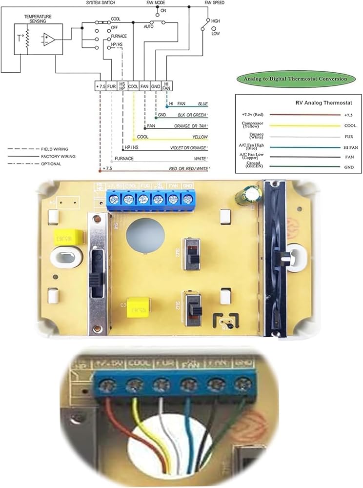 Product Information: This RV thermostat is suitable for Dometic 3106995.032 and is only used for heating/cooling, wall mounted installation.