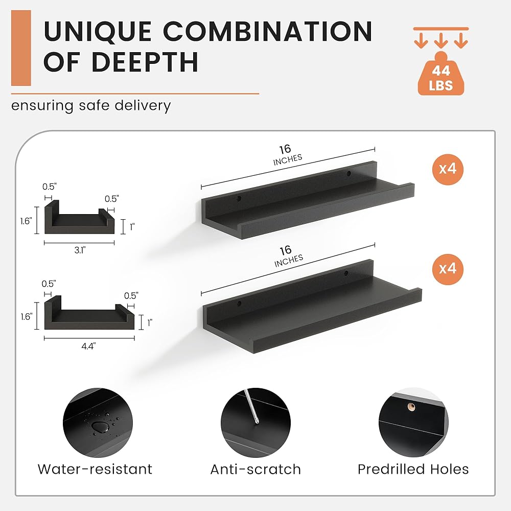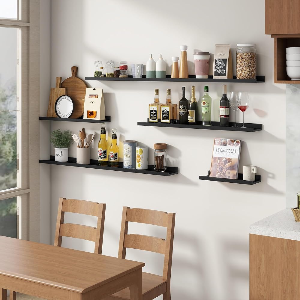 【Versatile and Multi-Functional】These shelves aren't just for photos! FLYJOE ledge shelves can be creatively used as kids' bookshelves, display shelves for collectibles, spice racks in the kitchen, or even over-the-toilet storage in the bathroom. Their adaptability makes them a practical choice for any room in your home