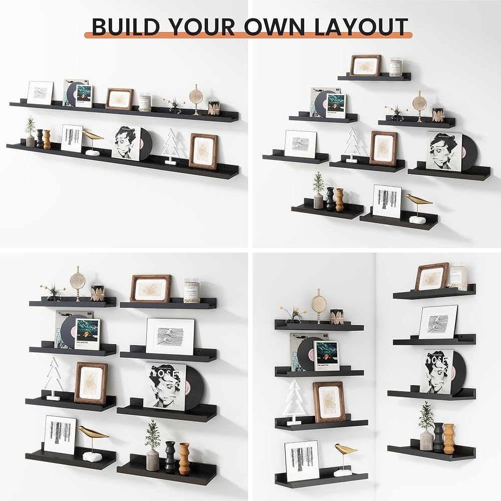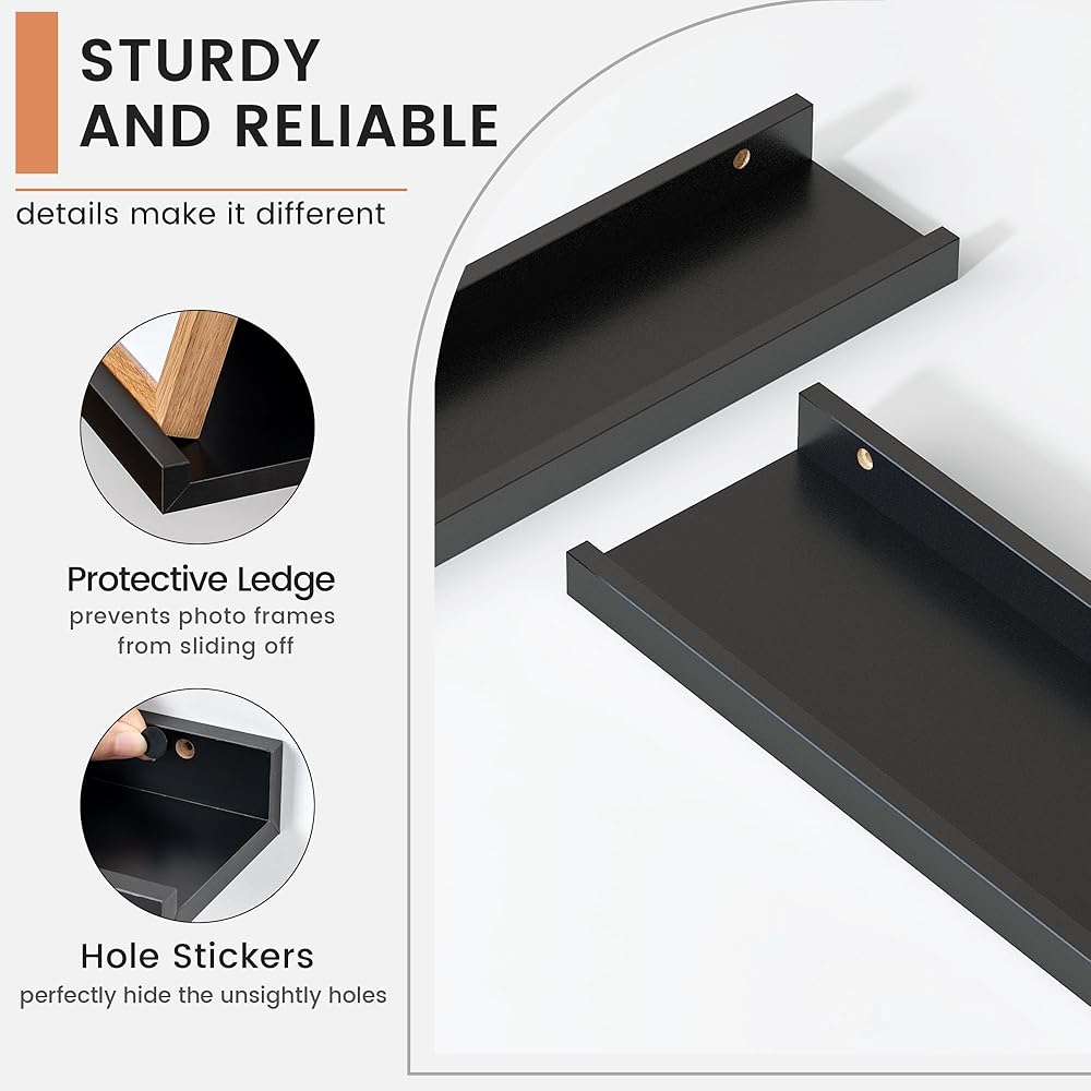 【Picture Ledge Perfect for Display】FLYJOE picture ledge shelves for wall turn your walls into a stunning photo gallery! These spacious shelves are ideal for showcasing a variety of picture frames in one secure place. With a thoughtful protective lip, you can display everything from photos to collectibles without worrying about them falling off