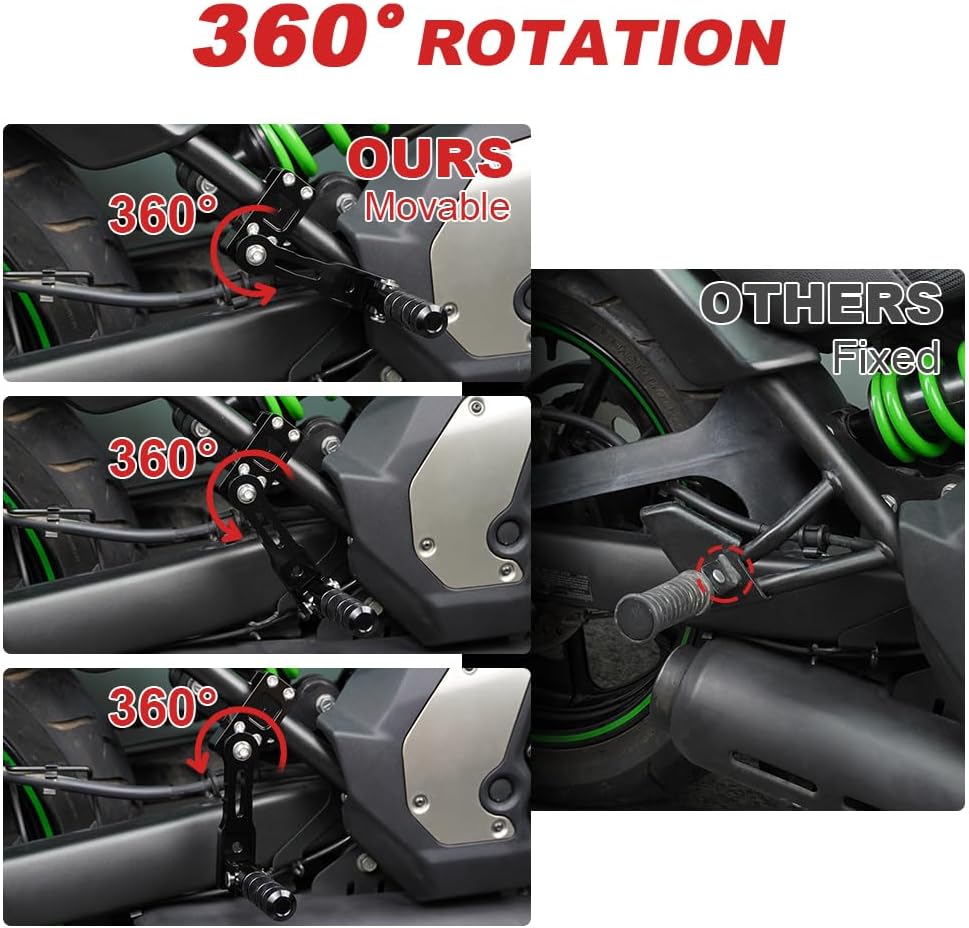 Xitomer's adjustable aluminum highway peg mounts allow you to customize pedal position for maximum comfort and reduced fatigue.