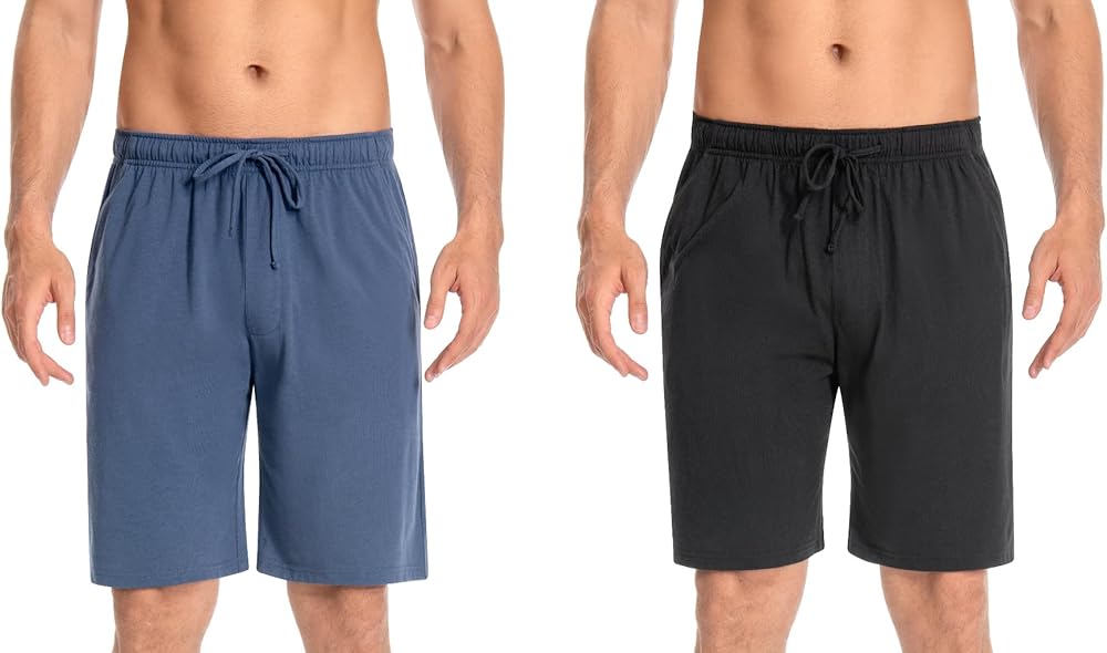 2 Side pockets, enough to hold a phone and free your hands. 2 packs Lounge Wear Pyjama Shorts, can be shared with family.