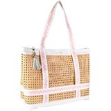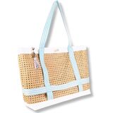COTTON HANDLES FOR COMFORTABLE CARRY: Lightweight yet sturdy straps in a classic blue stripe make it easy to tote everything from sunscreen to snacks—without digging into your shoulder.