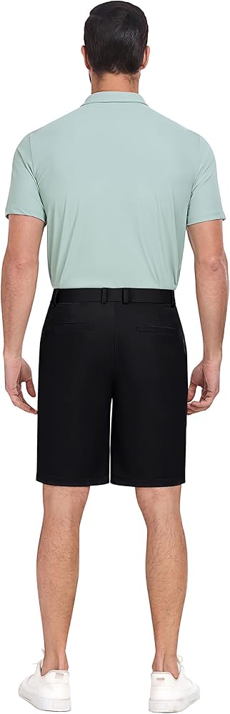 3. Multiple Pockets Design: The mens dress shorts have 4 pockets, two side pockets and two back pockets for enough space. We also offer you a variety of colors to choose from, dark grey, light grey, khaki, green, and black mens golf dress shorts.