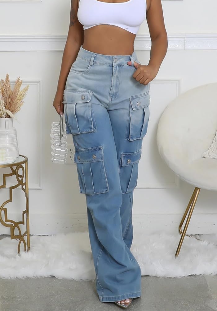 - Key features: Gradient denim, buttons pockets, stretchy, boyfriend jeans, baggy