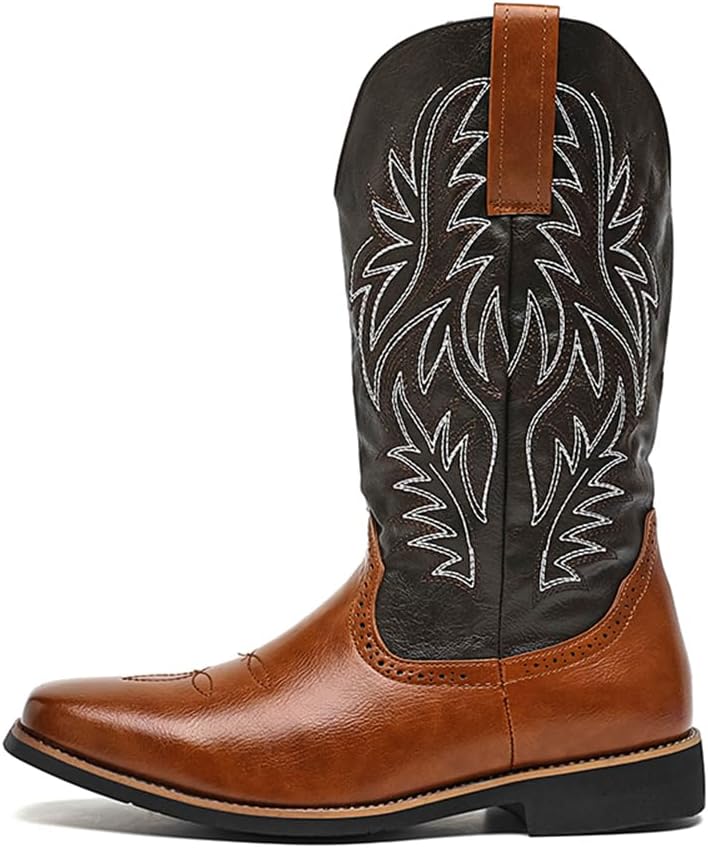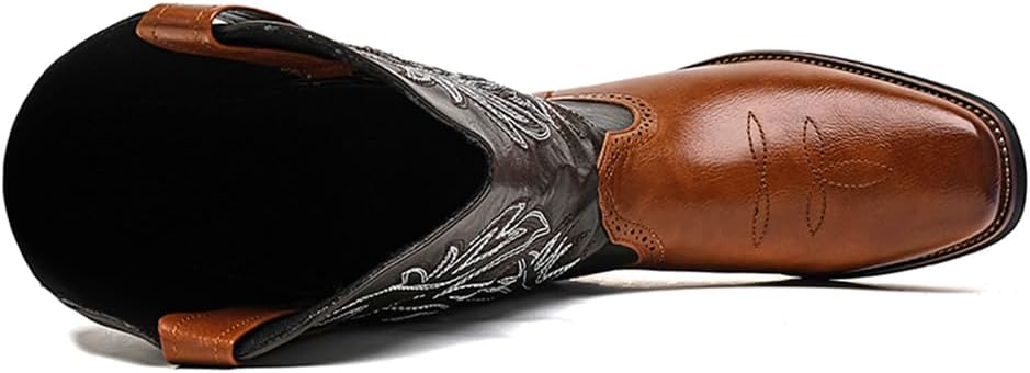 【Comfortable Sole】: Men's cowboy boots are made of durable rubber sole and soft insole, providing full support and comfort for your feet, lightweight and ergonomic, providing all-day comfort, suitable for various workplaces.