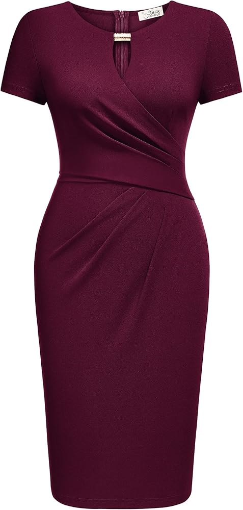 AISIZE Women's Classic Keyhole Neck Wrap Cocktail Party Sheath Dress