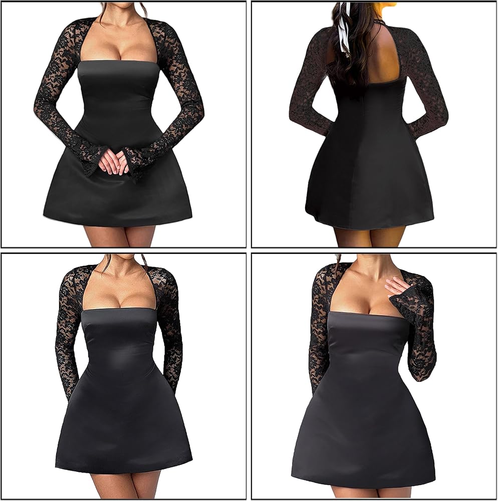 Our women's lace patchwork long sleeve A lined mini dress accentuates your figure, making you feel confident and sexy. Featuring pockets decorations and strapless tube design that adds a touch of glamour and elegance to your look