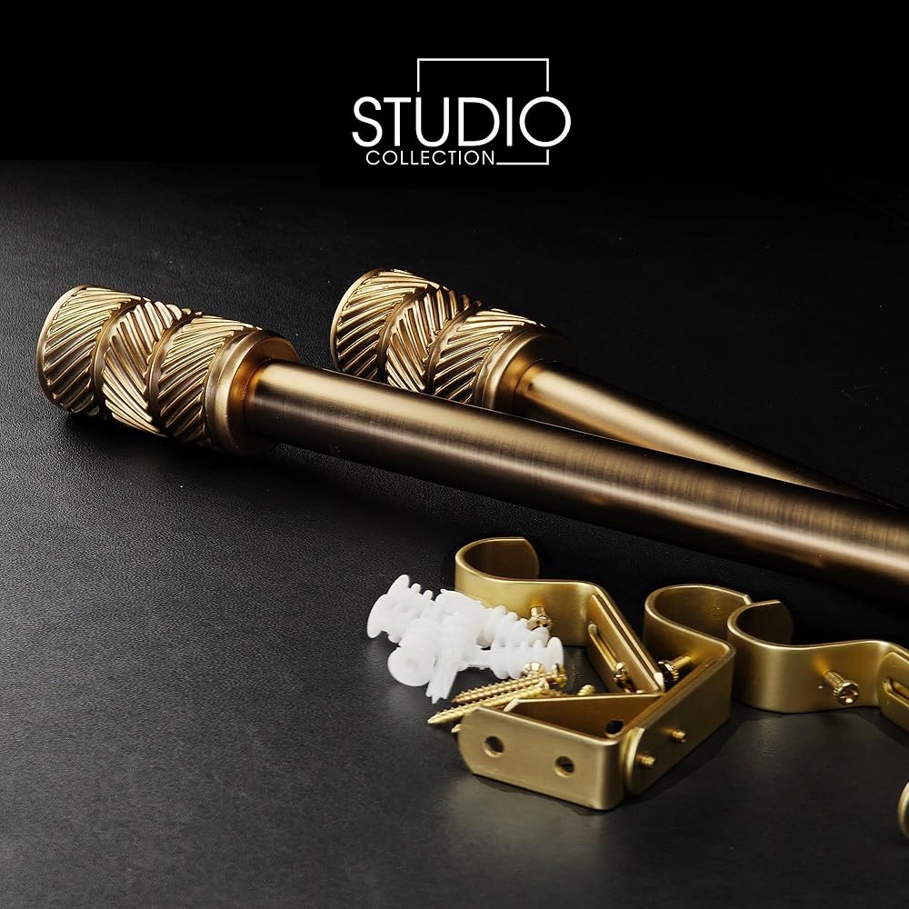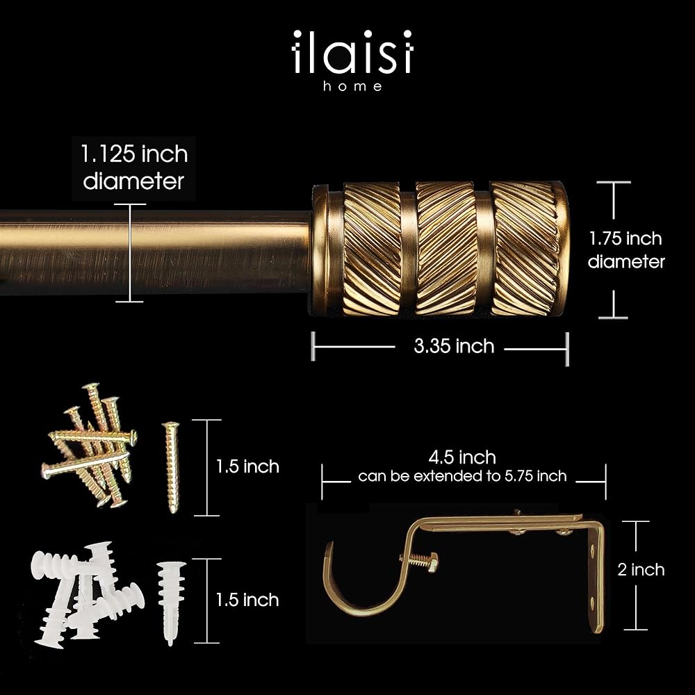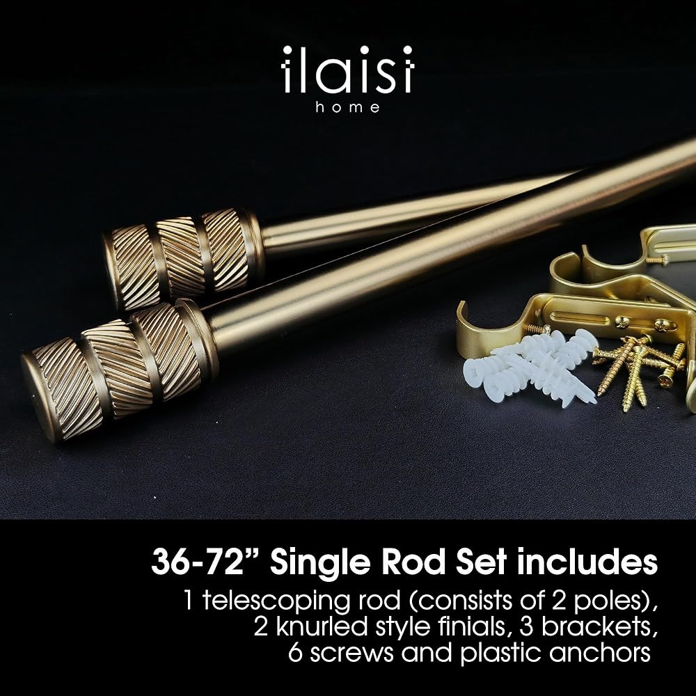 ILAISIHOME 1-1/8 Inch Diameter Antique Gold Curtain Rods with Knurl Design Finial, Telescoping Single Curtain Rods for window, 1 pack