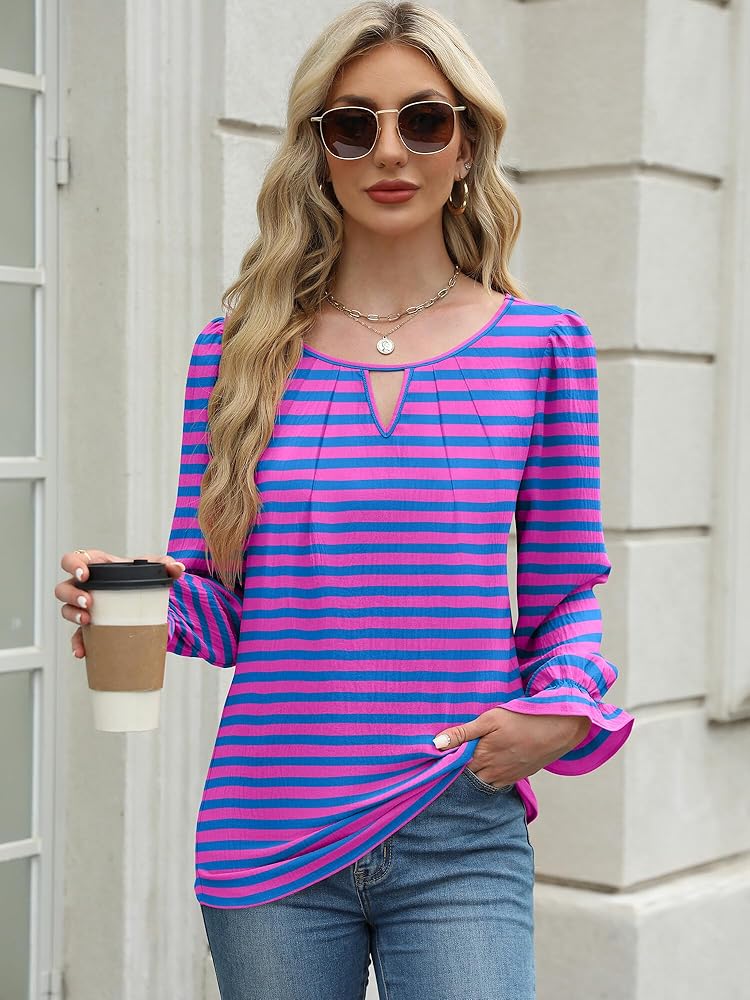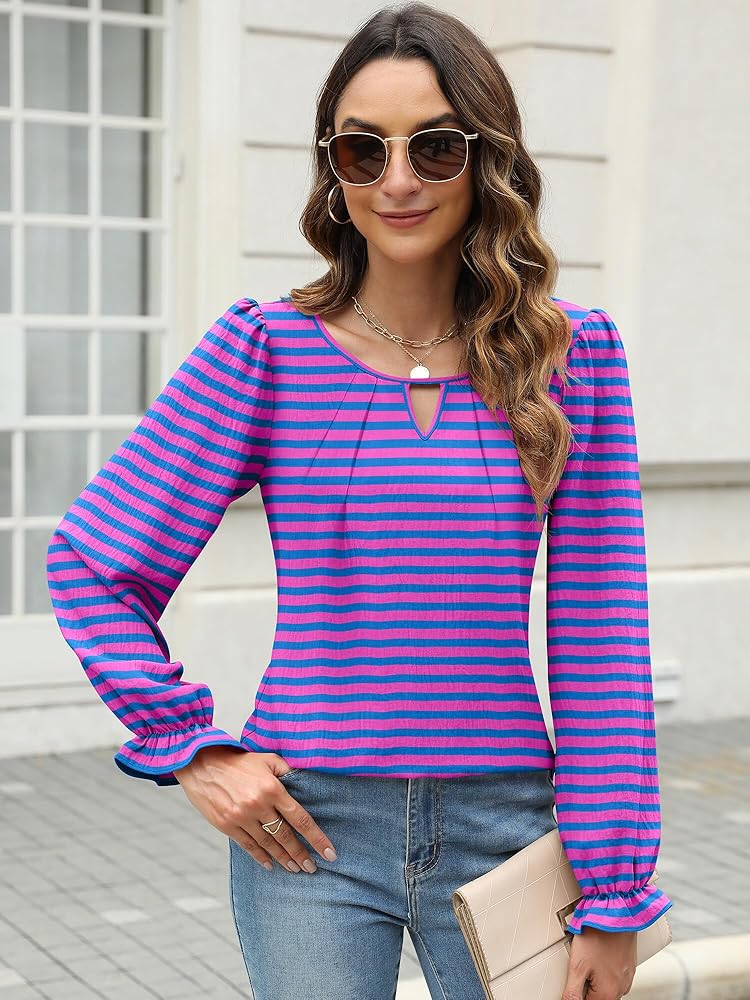 Features: Blouses for women can be easily dressed up or down, designed with a v-neck, puff sleeve, ruffle trim, loose fit, solid color, pleats front, and keyholes, it's stylish, elegant, classy, and has a flowy cut that is very flattering, making it a versatile wardrobe staple.