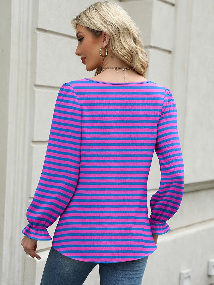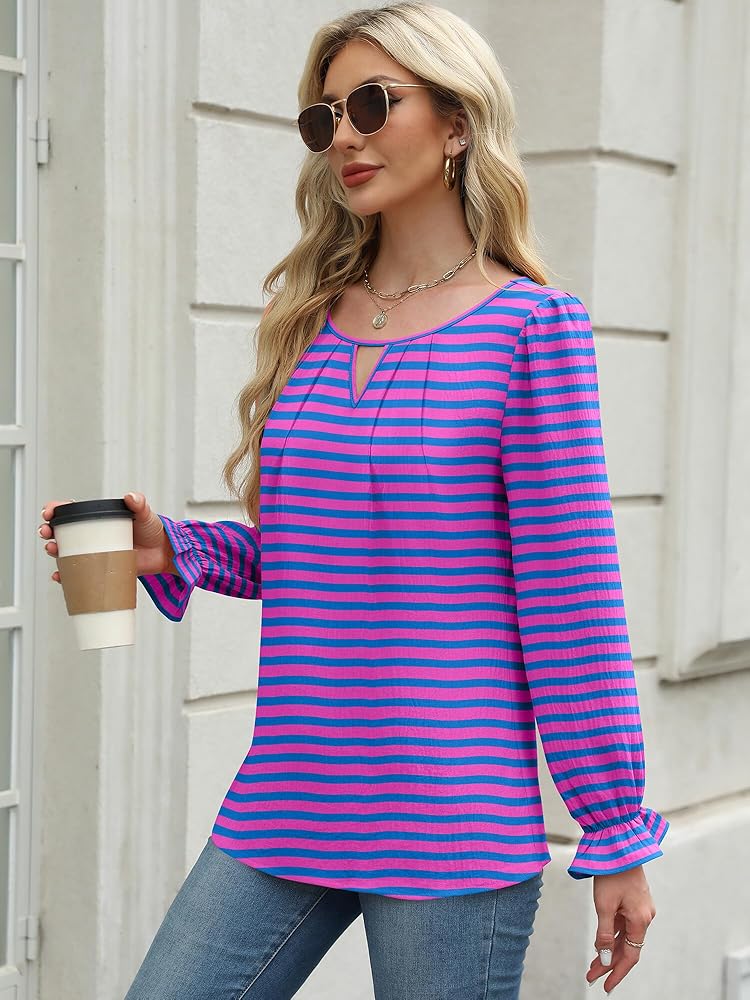 Material: The blouses for women's dressy casual are made with quality, lightweight, and breathable fabric, ultra-soft, skin-friendly, and cute to wear, not too see-through or clingy like other blouses, this simple top is comfortable to wear in fall and winter.