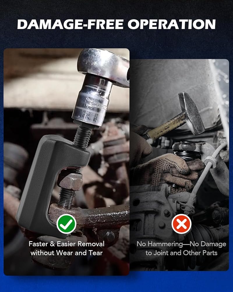 2 HARDENED ALLOY CONSTRUCTION: Extraordinarily tough and durable alloy means these tools can stand up to the toughest jobs. This front end service tool kit can remove the most stubborn ball joints, tie rod ends, and pitman arms.