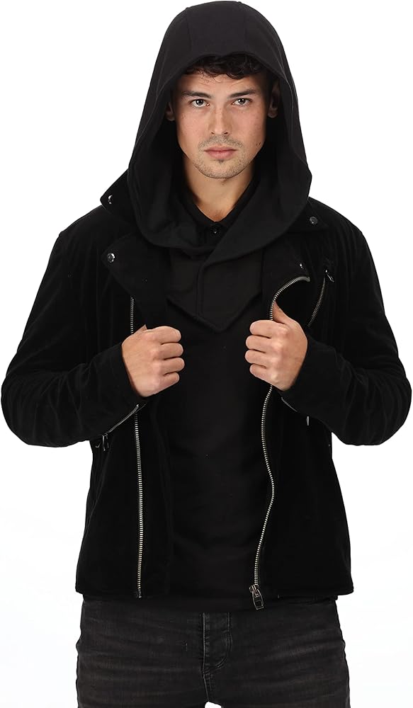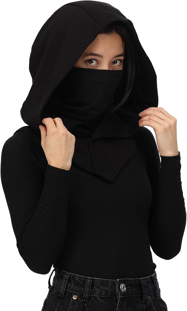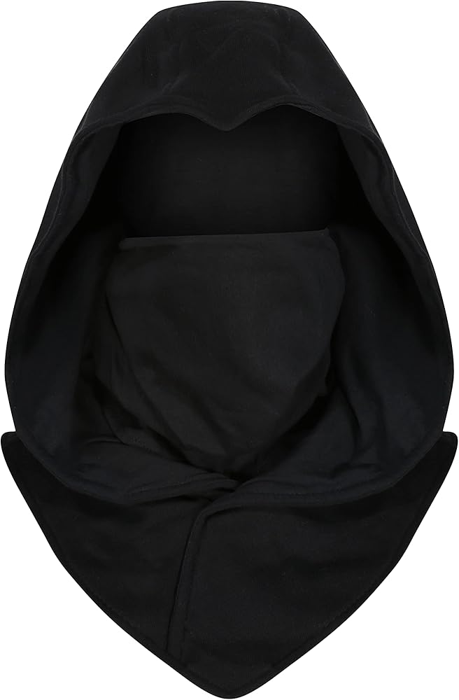 This hood is double lined cotton and is great for costume and casual wear. It is a one size fits all and is designed to compliment any non-hooded garment, transforming your regular sweatshirt into a full hoodie or even worn under a casual jacket. The hood also has an integrated scarf/mask that can be removed easily if desired.