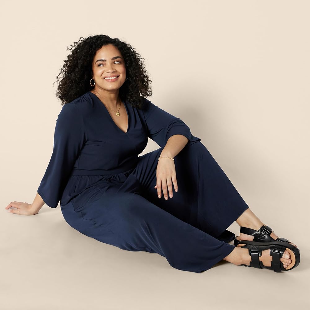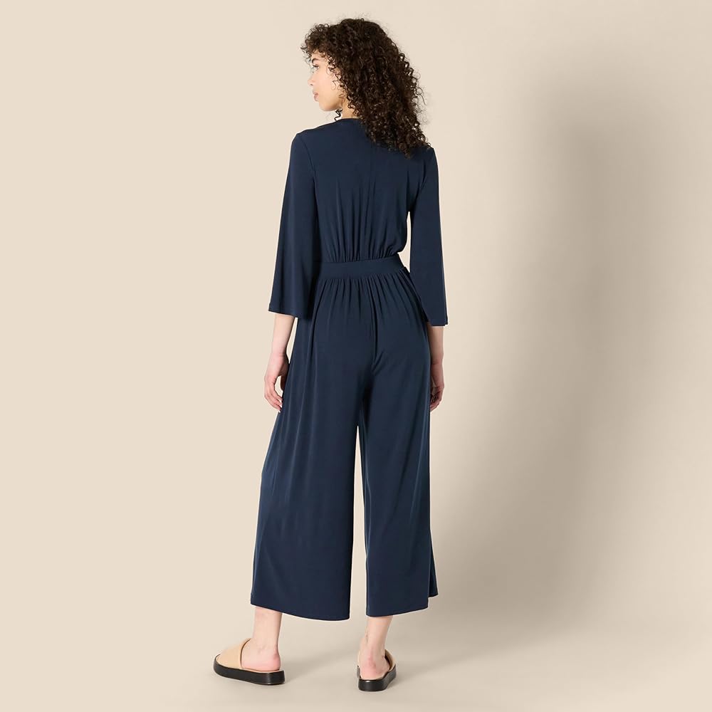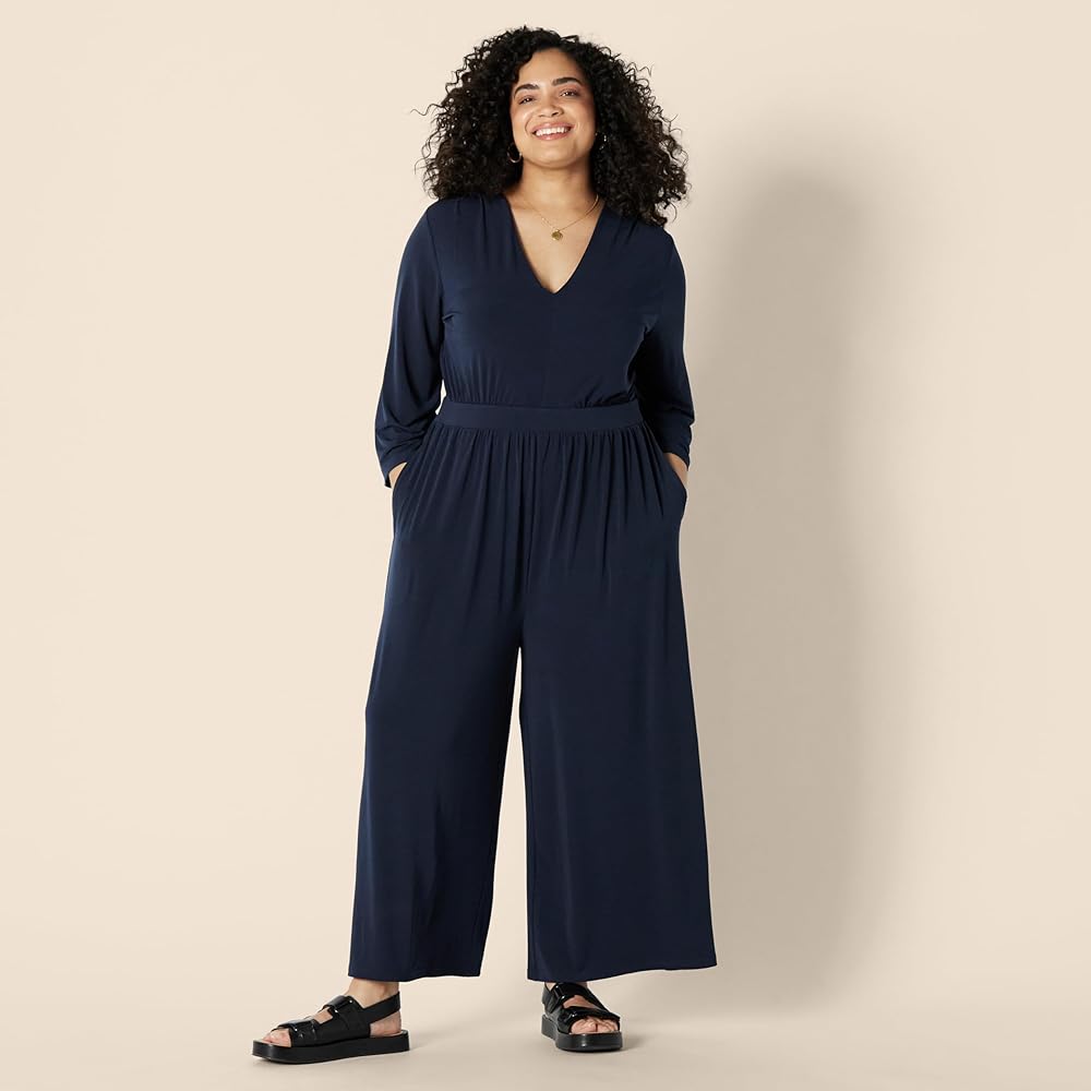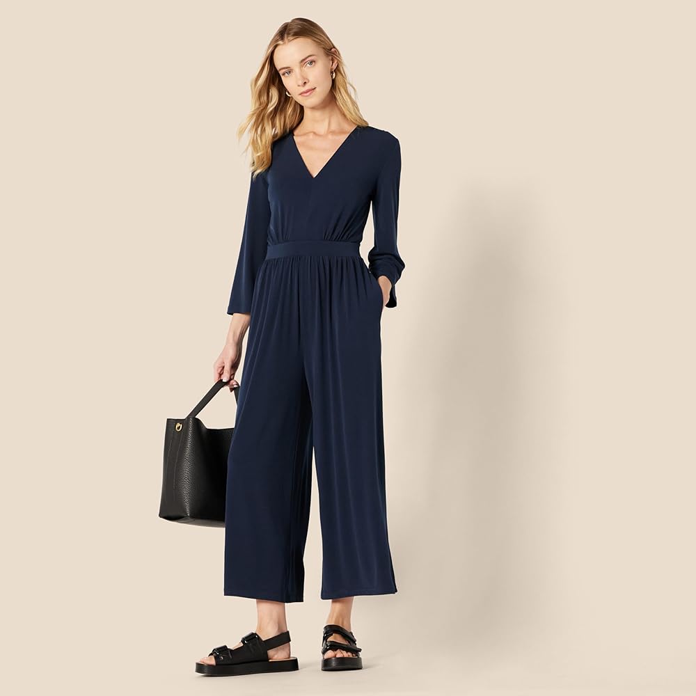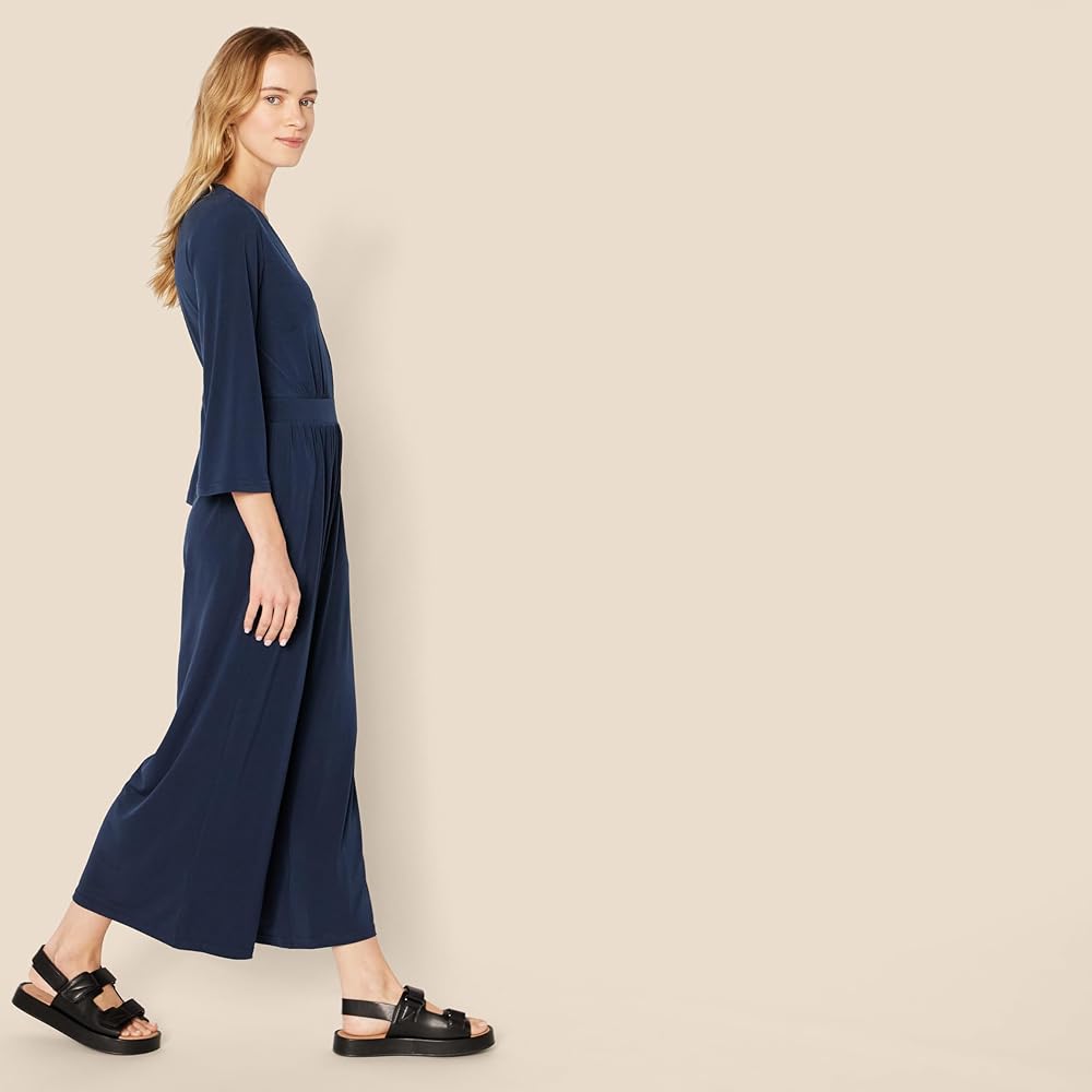 EASY KNIT DRESSING: This versatile and figure-flattering wide-leg jumpsuit seamlessly transitions from day to night. Pair it with your favorite sneakers for a day of city exploration or dress it up for an evening out with Amazon Essentials Women's Two-Strap Heeled Sandals