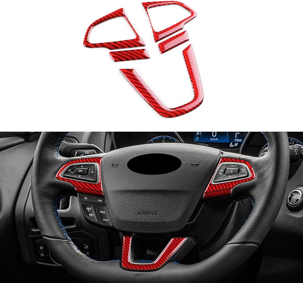 Real Carbon Fiber Steering Wheel, Button Chin Frame Covers for Ford Focus RS/ST/SE/ECO Boost (2015-2018), Decor Stickers Kit Interior Car Accessories, Red