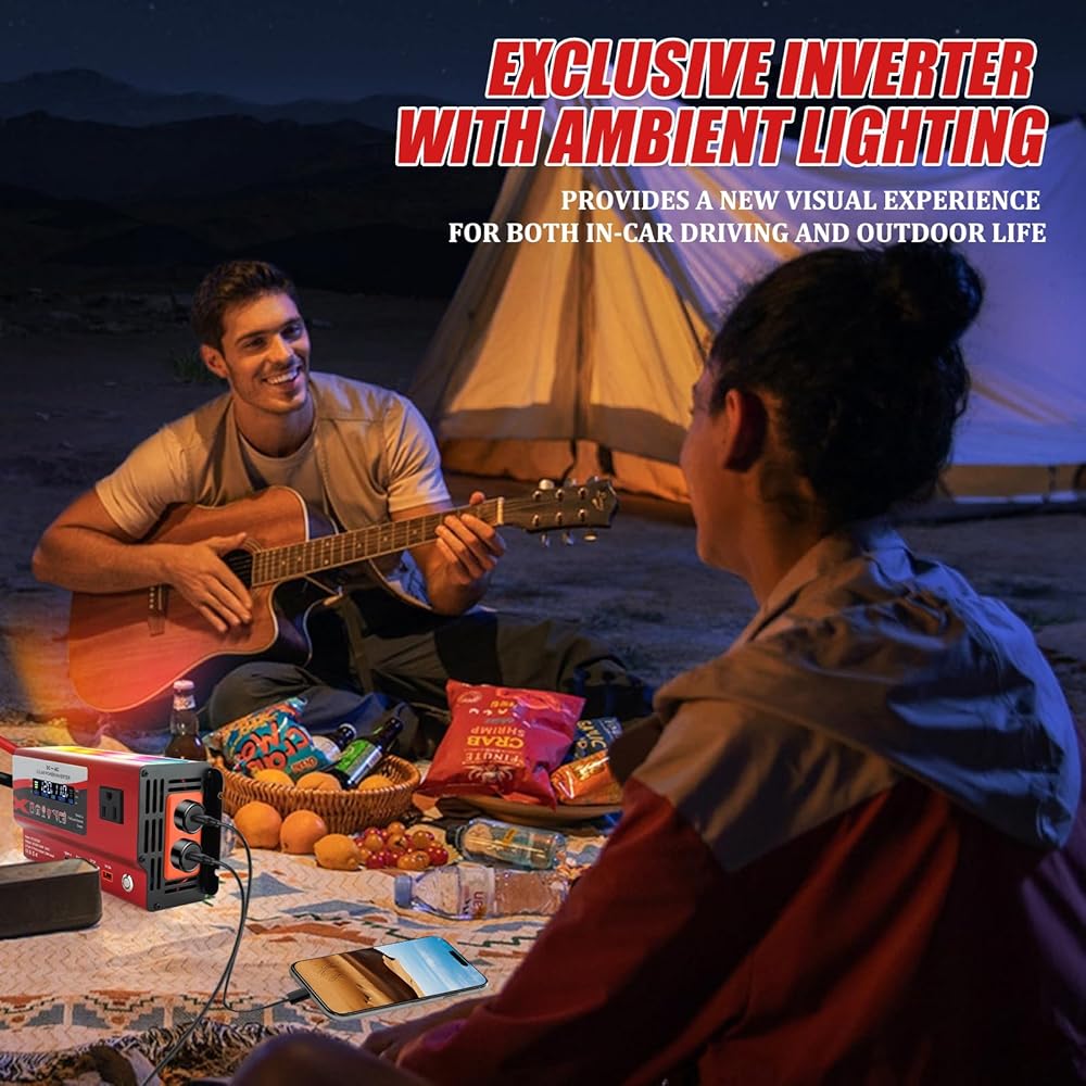 [Stylish Ambiance] The car outlet inverter features ambient lighting that creates a sporty and stylish atmosphere, perfectly for outdoor activities and travel, enhancing the overall experience.