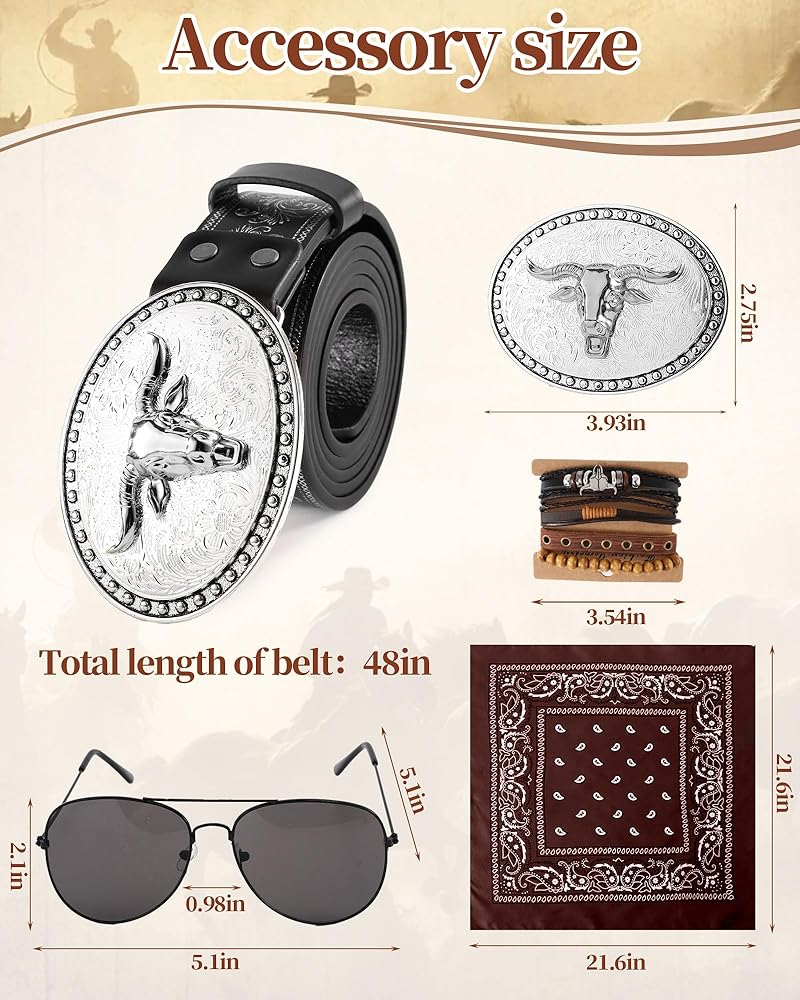 Crafted for bold style seekers, this premium set includes a suede leather vest, paisley bandana, buckle belt, wooden bead leather bracelets, and black retro sunglasses. Perfect for creating iconic cowboy looks, whether for themed parties, Halloween, festivals, or edgy everyday outfits. Mix and match pieces for endless styling versatility.