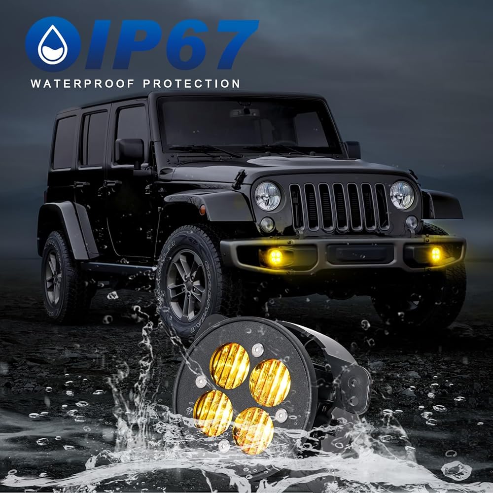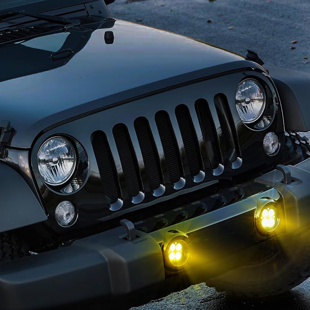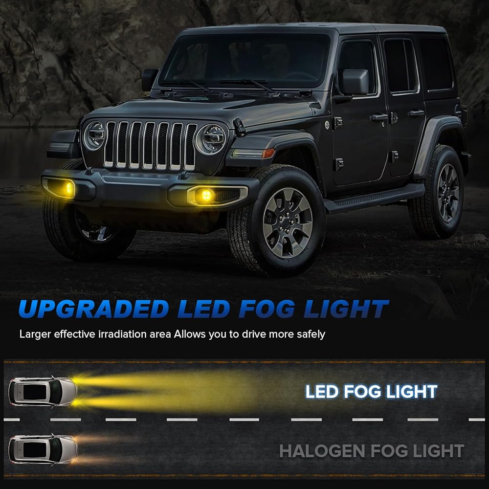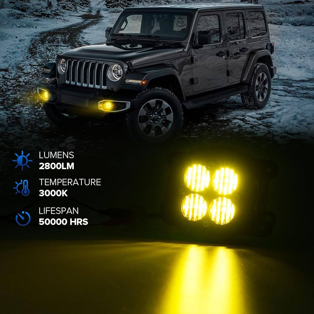 4 Inch LED Fog Lights Compatible with 2007-2018 Wrangler JK JK Unlimited JKU Sport S Rubicon Sahara, Off-Road Lamps Front Bumper LED Fog Lights, Yellow Light