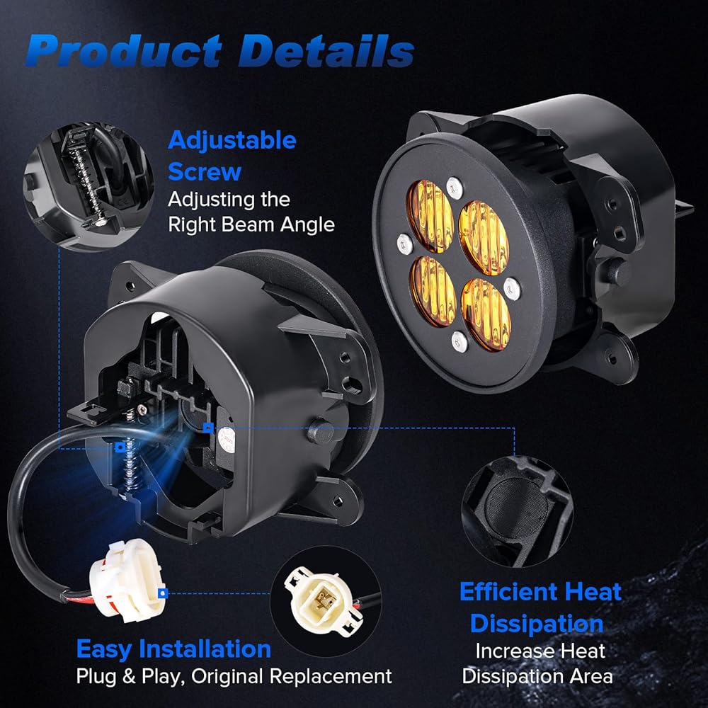 【After-Sales】1 pair of fog lights. DOT/SAE approved, Legal on road. Provide 1 year warranty, if you have any problem, please feel free to contact us, we will provide you with a solution that satisfies you. Thank you for your support.