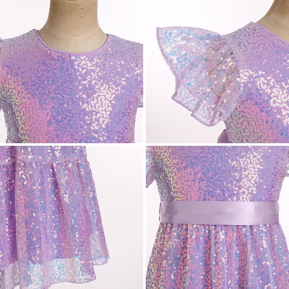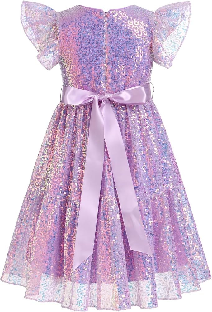 GIRL BIRTHDAY DRESS: You're sure to shine in this IBAKOM girl sequin dress! Made from a glitter and soft fabric, this flutter sleeve toddler sparkly dress boasts a sequined bodice with pleated skirt, a back zipper detailing, and a self tie waist. Sparkling with retro-chic charm, this dazzling teen party dress is truly one-of-a-kind.