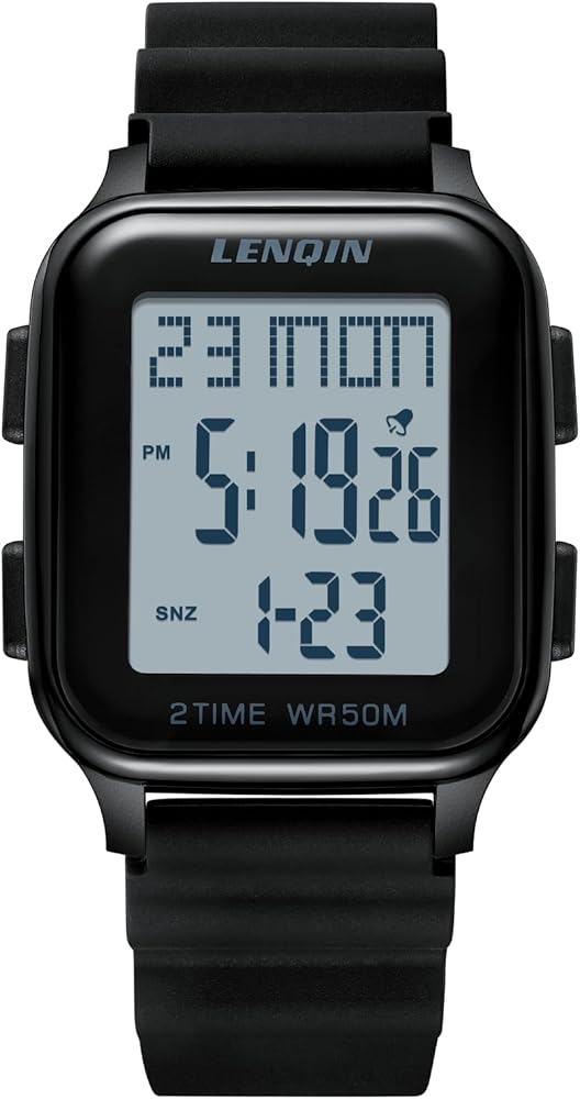 LN LENQIN Digital Watches for Men: Ultra Thin Minimalist Sports Waterproof Wristwatch with Alarm Date Stopwatch - LED Backlight Silicone Mens Digital Watch for Outdoor
