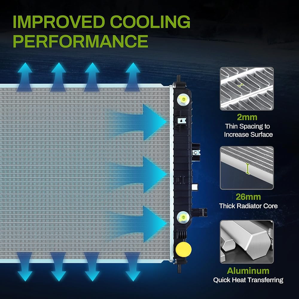 DIRECT FIT & HIGH EFFICIENCY: OE standard for easy installation; Our complete radiator is built with high density multi-louvered fins for maximum cooling efficiency, ensuring durability in extreme hot/cold weather