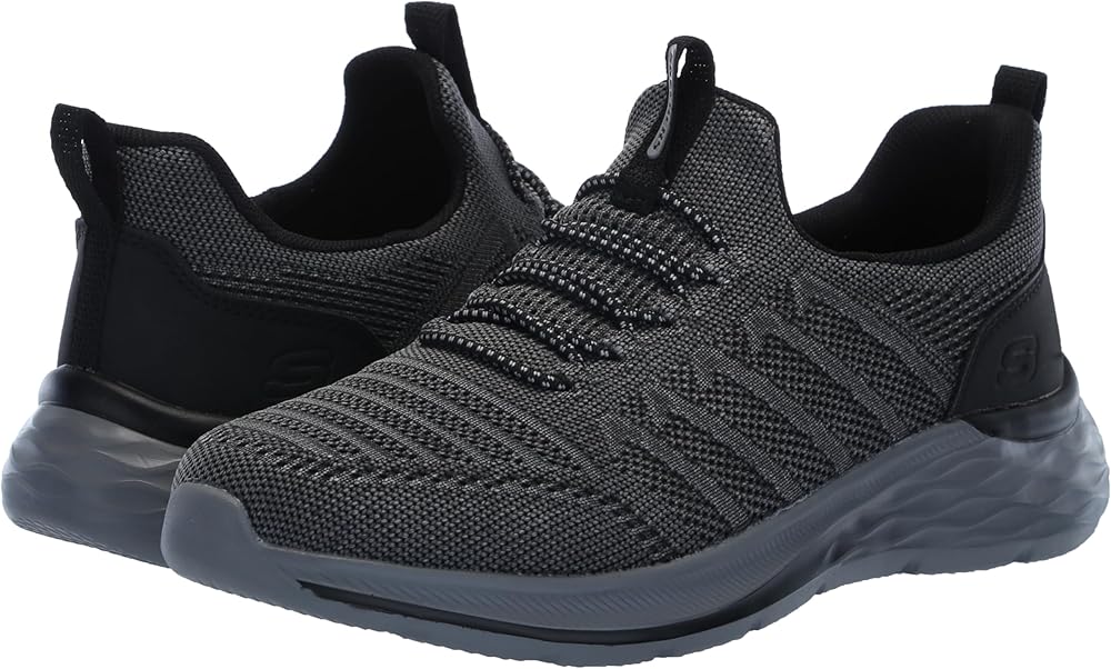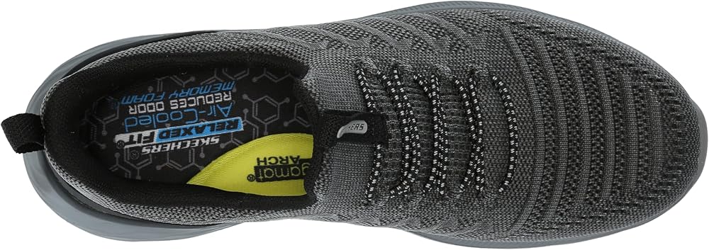 Try your new look in modern comfort and sleek design wearing Skechers Relaxed Fit®: Garner - Crispin. This roomy vegan style features an athletic mesh upper with fixed stretch-laces, a charcoal-infused Skechers Air-Cooled Memory Foam® insole, and Goga Mat Arch™ cushioning for added support.