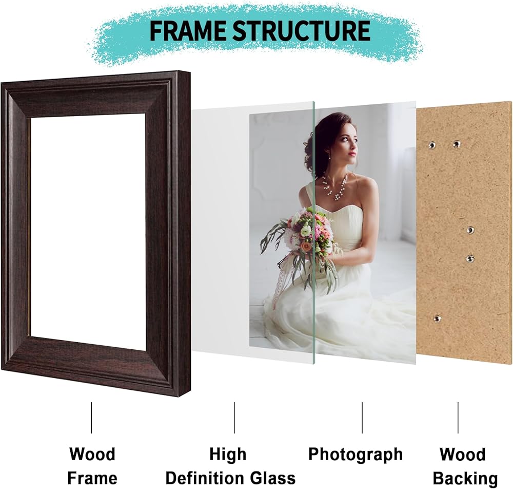 COMPOSITE WOOD PHOTO FRAME: This picture frames set made of MDF, The HD glass cover can clearly display your cherished photos(No worrying about injury for broken glass), protecting your photos from dust, moisture and scratches.