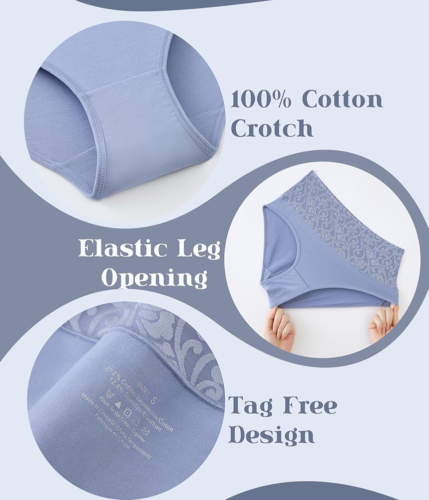 【Super Soft & Comfortable Briefs】: These comfortable women's cotton briefs are made of 87.2% cotton and 12.8% spandex, providing good breathability and comfortable wearing experience, no pinching, no rolling. Natural pure cotton double-layer crotch lining, moisture wicking, added protection.