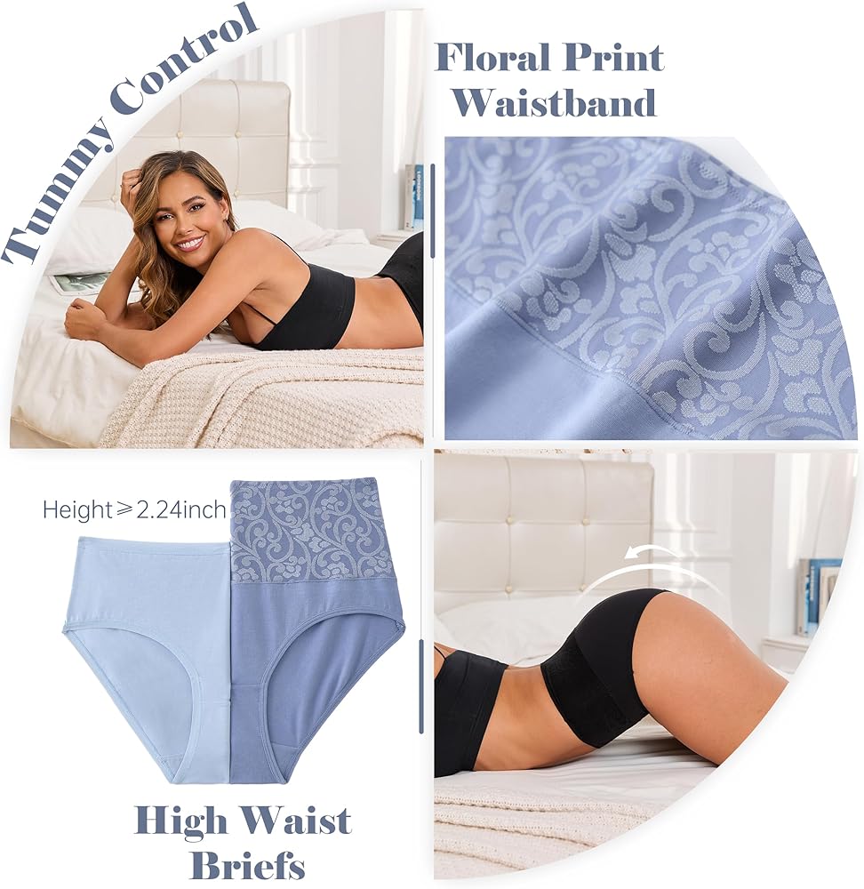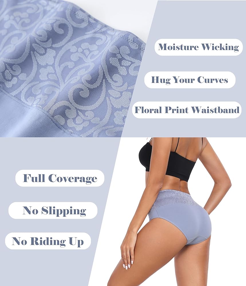 【Double-layer Jacquard Waistband】: The soft and elastic double-layer fabric waistband sits right at the waist. It will not roll up or pleat, will not compress, and is very comfortable. The high-waisted briefs provide moderate abdominal support, reduce the appearance of a small belly, and perfectly show your figure. In addition, the wide-brimmed rose jacquard women's briefs look very fashionable and charming.