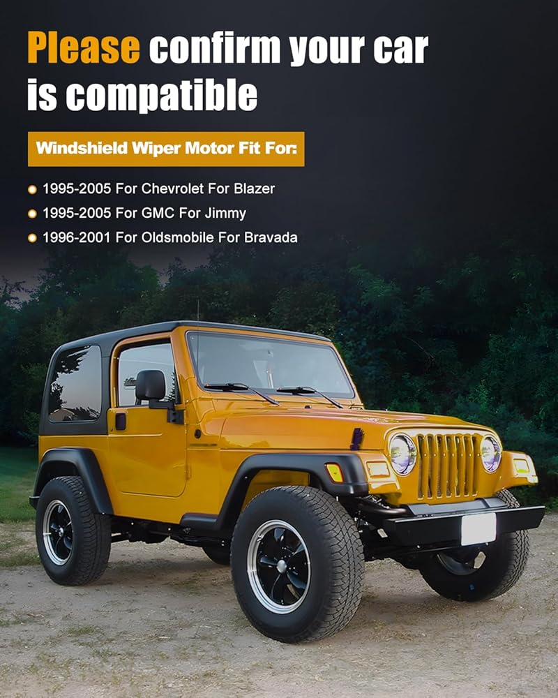 Windshield Wiper Motor Compatibility: Windshield Wiper Motor replacement fits for 1995-2005 For Chevrolet For Blazer,1995-2005 For GMC For Jimmy,1996-2001 For Oldsmobile For Bravada